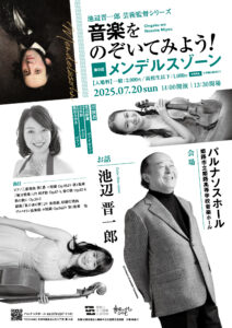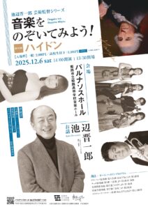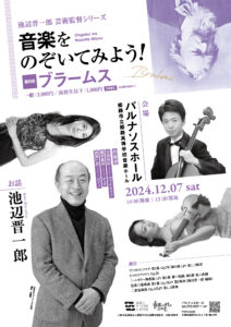 作曲家・池辺晋一郎さんがプロデュースする人気シリーズ「音楽をのぞいてみよう!」。現代の作曲家ならではの視点から、大作曲家たちを紐解くレクチャー付きコンサートとして、パルナソスホールで親しまれてきました。